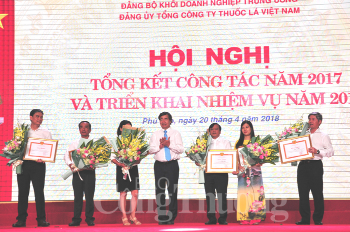 Cũng trong ngày 20/4/2018, Đảng bộ Tổng công ty Thuốc lá Việt Nam tổ chức hội nghị tồng kết công tác năm 2017 và triển khai nhiệm vụ năm 2018. Năm 2017 Đảng bộ lãnh đạo toàn Tổng công ty vượt qua nhiều khó khăn thách thức, hoàn thành tốt các chỉ tiêu sản xuất kinh doanh, doanh thu đạt 25.654 tỷ đồng, vượt 9,6% kế hoạch năm, lợi nhuận trước thuế đạt 2.007 tỷ đồng, vượt 39,1% so với kế hoạch, nộp ngân sách nhà nước vượt 25,2% kế hoạch, thu nhập bình quân người lao động đạt 15,1 triệu đồng/tháng, tăng 24% so với cùng kỳ năm 2016. Các mục tiêu, nhiệm vụ và giải pháp trong công tác xây dựng Đảng được triển khai nghiêm túc và hiệu quả, đặc biệt trong bối cảnh ngành thuốc lá có nhiều cạnh tranh gay gắt, Tổng công ty đang tập trung thực hiện cổ phần hóa các công ty trực thuộc và chuẩn bị cho cổ phần hóa công ty mẹ- Tổng công ty Thuốc lá Việt Nam.