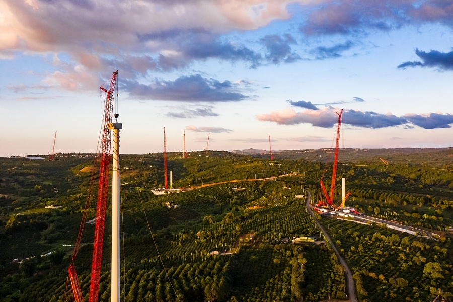 Toàn cảnh thi công nhà máy điện gió lớn nhất Việt Nam: