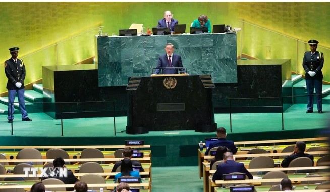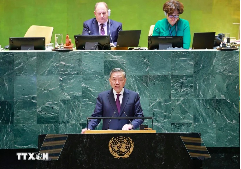| Tổng Bí thư, Chủ tịch nước Tô Lâm phát biểu tại Phiên thảo luận chung cấp cao Đại hội đồng Liên hợp quốc Khóa 79. (Ảnh: Lâm Khánh/TTXVN) |