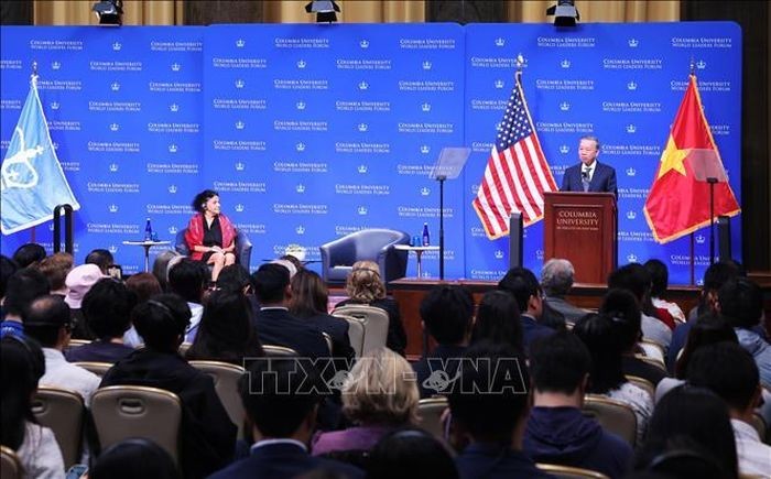| Tổng Bí thư, Chủ tịch nước Tô Lâm phát biểu chính sách tại Đại học Columbia. Ảnh: Lâm Khánh/TTXVN |