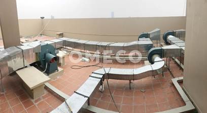 | Quạt ly tâm tăng áp, hút khói PCCC TOMECO lắp đặt ở tòa nhà |
