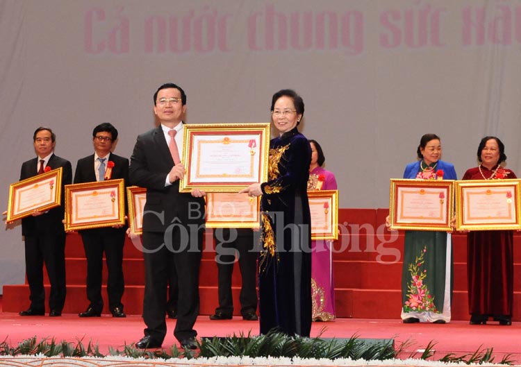 Cũng tại lễ tôn vinh, Phó Chủ tịch nước Nguyễn Thị Doan trao Huân chương Lao động hạng Nhất cho 14 bộ, ban ngành, đoàn thể Trung ương là Bộ Quốc phòng, Bộ Công an, Bộ Nông nghiệp và Phát triển nông thôn, Bộ Giao thông Vận tải, Bộ Lao động, Thương binh và Xã hội, Ban Dân vận Trung ương, Ủy ban Trung ương Mặt trận Tổ quốc Việt Nam, Hội Nông dân Việt Nam, báo Nhân dân, Đài truyền hình Việt Nam, Ngân hàng Nhà nước Việt Nam, Tập đoàn Dầu khí quốc gia Việt Nam, Tổng công ty Xi măng Việt Nam, Tập đoàn Điện lực Việt Nam.