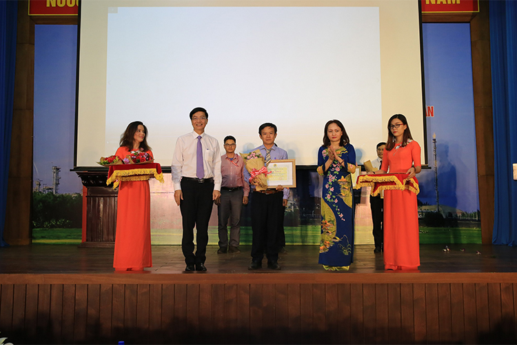 Tổng Giám đốc Công ty BSR tặng giấy khen cho 3 tập thể và 16 cá nhân đã có nhiều đóng góp trong công tác đảm bảo an toàn NMLD Dung Quất.