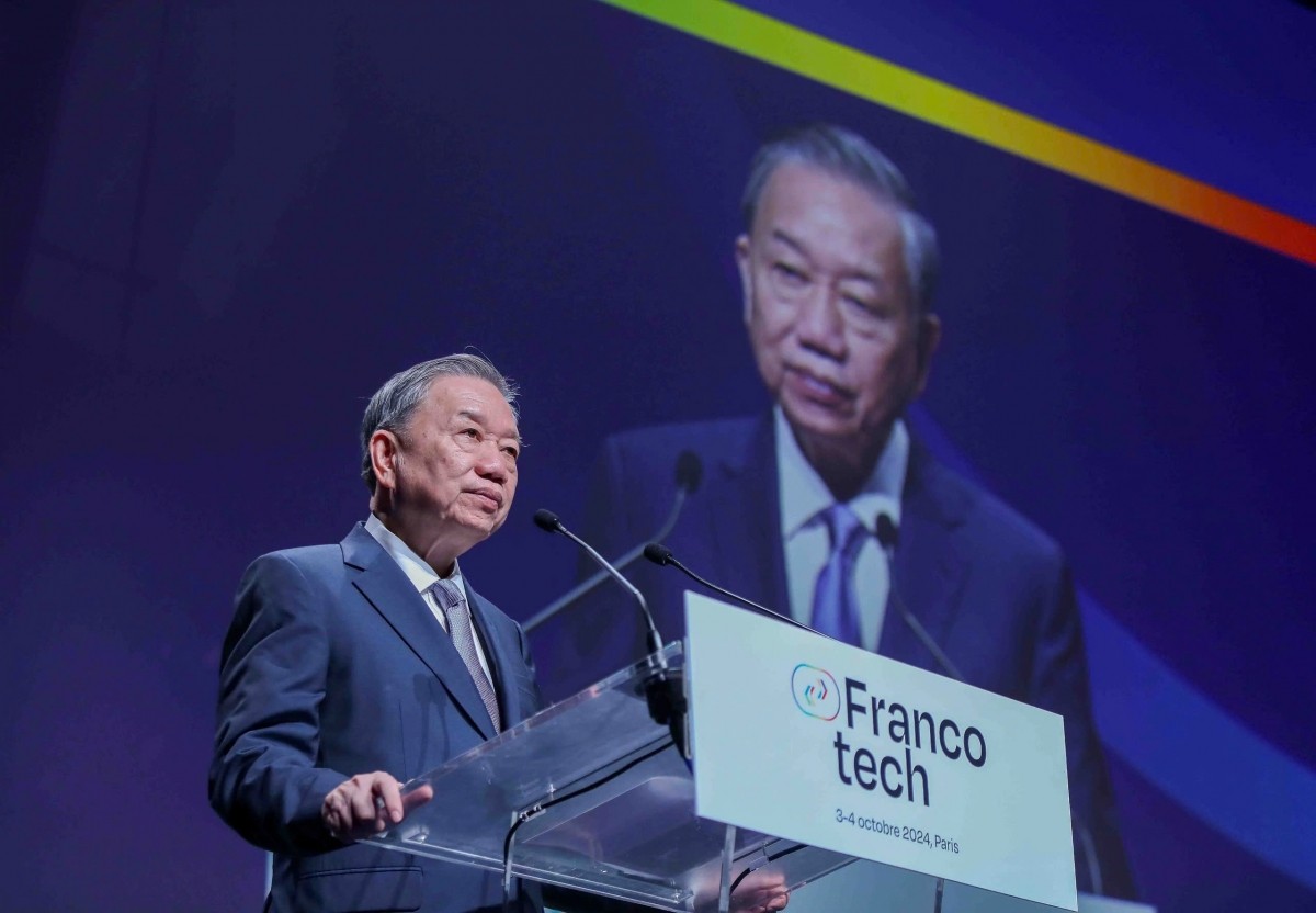 Tổng Bí thư, chủ tịch nước Tô Lâm phát biểu tại diễn đàn Franco Tech. Ảnh: VOV