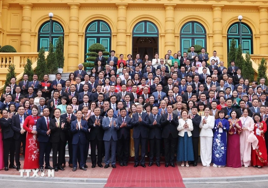 | Tổng Bí thư, Chủ tịch nước Tô Lâm gặp gỡ đại diện giới doanh nhân Việt Nam. Ảnh: TTXVN |