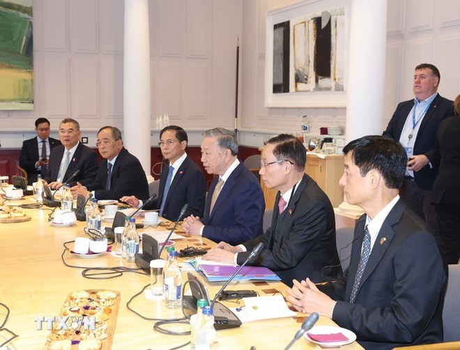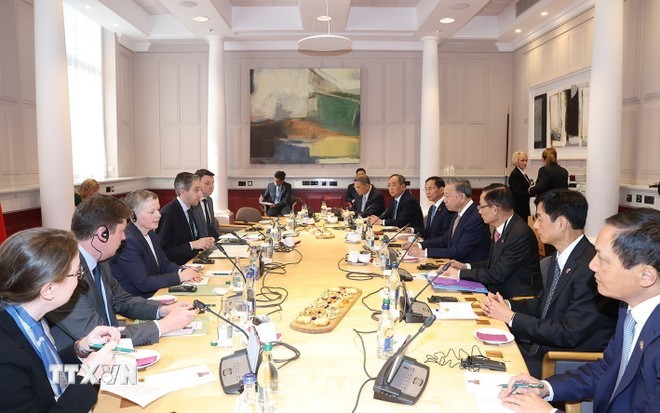 Theo đặc phái viên TTXVN, trong khuôn khổ chuyến thăm cấp Nhà nước tới Ireland, sáng 3/10 (theo giờ địa phương), tại thủ đô Dublin, Tổng Bí thư, Chủ tịch nước Tô Lâm đã hội kiến Thủ tướng Ireland Simon Harris.