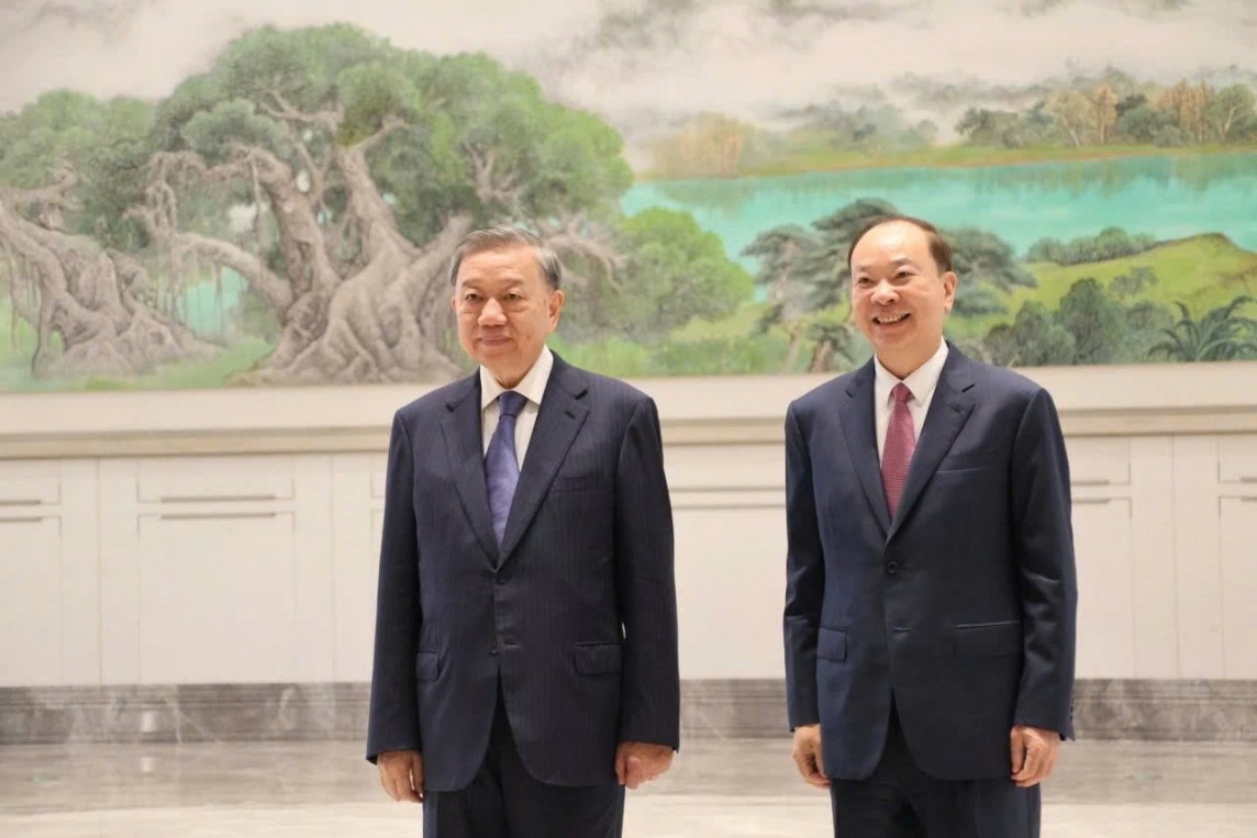 | Tổng Bí thư, Chủ tịch nước Tô Lâm và đồng chí Hoàng Khôn Minh, Ủy viên Bộ Chính trị, Bí thư Tỉnh ủy Quảng Đông. Ảnh: Quang Kiên |