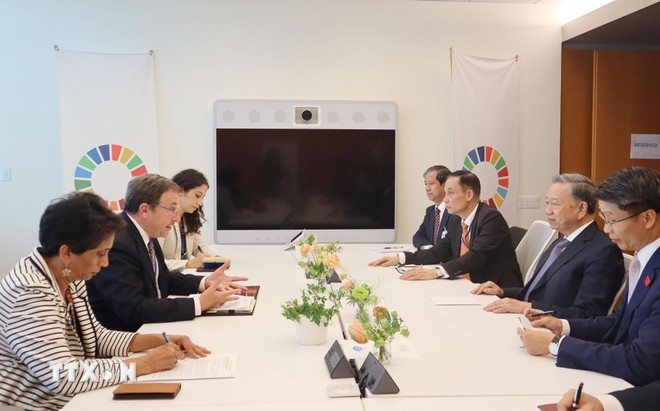 Theo đặc phái viên TTXVN, tiếp tục các hoạt động trong khuôn khổ chuyến công tác tại New York, Hoa Kỳ, chiều 24/9 theo giờ địa phương, Tổng Bí thư, Chủ tịch nước Tô Lâm đã có các cuộc gặp với Tổng Thư ký Liên hợp quốc António Guterres, Chủ tịch Đại hội đồng Liên hợp quốc Khóa 79 Philemon Yang, Tổng Giám đốc Chương trình phát triển Liên hợp quốc (UNDP) Achim Steiner và Giám đốc điều hành Quỹ Nhi đồng Liên hợp quốc (UNICEF) Catherine Russel.
