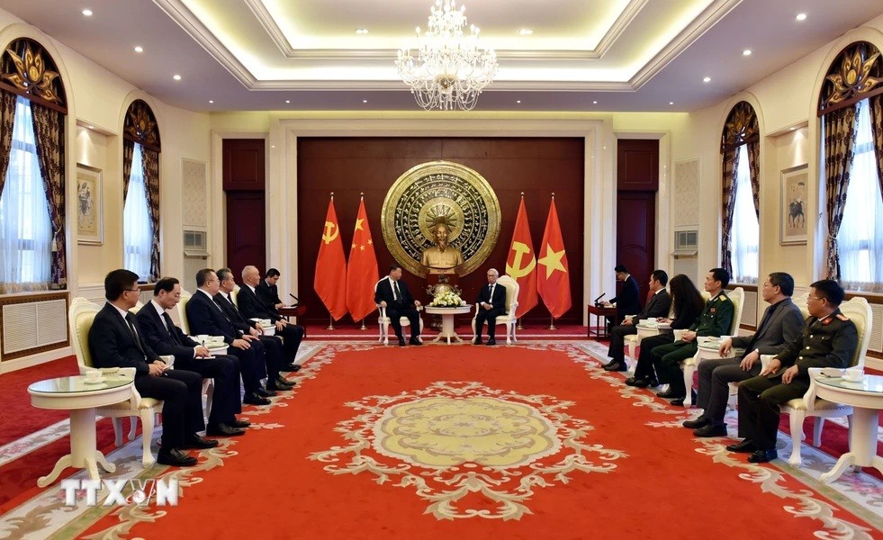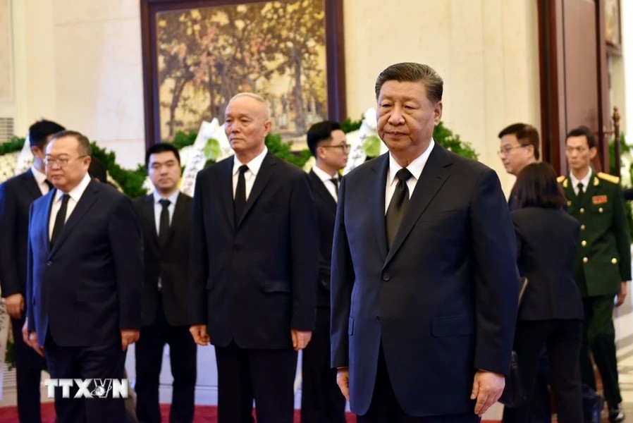 | Tổng Bí thư, Chủ tịch Trung Quốc Tập Cận Bình cùng Đoàn lãnh đạo cấp cao Trung Quốc viếng Tổng Bí thư Nguyễn Phú Trọng. Ảnh: Thành Dương/PV TTXVN tại Trung Quốc |