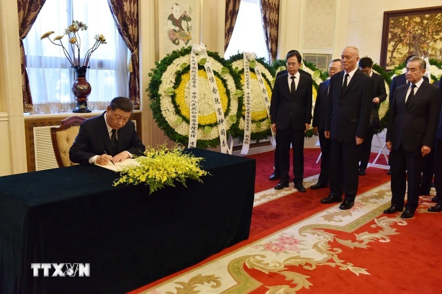 | Tổng Bí thư, Chủ tịch Trung Quốc Tập Cận Bình ghi sổ tang tại Lễ viếng Tổng Bí thư Nguyễn Phú Trọng. Ảnh: Thành Dương/PV TTXVN tại Trung Quốc |