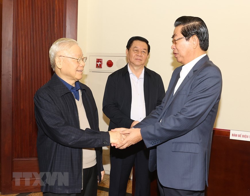 | Sáng 12/1/2023, tại Trụ sở Trung ương Đảng, Tổng Bí thư Nguyễn Phú Trọng, Trưởng Ban Chỉ đạo chủ trì Phiên họp thứ 23 của Ban Chỉ đạo Trung ương về phòng, chống tham nhũng, tiêu cực. (Ảnh: Trí Dũng/TTXVN) |