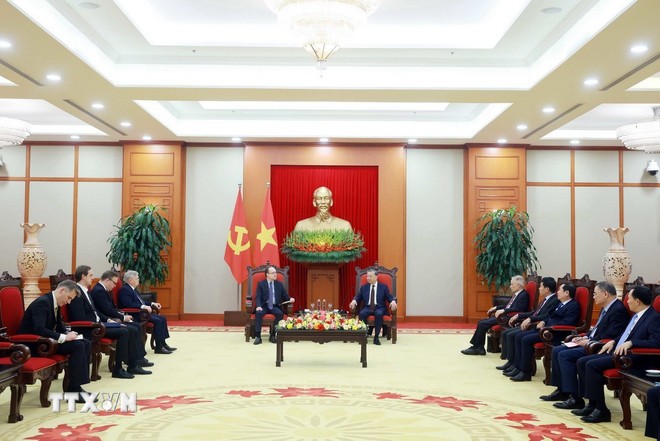 Tại cuộc gặp, Tổng Bí thư Tô Lâm đã bày tỏ sự vui mừng trước sự phát triển tích cực của quan hệ Đối tác Chiến lược Toàn diện giữa Việt Nam và Nga.