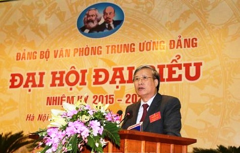 Đồng chí Trần Quốc Vượng, Bí thư Trung ương Đảng, Chánh Văn phòng Trung ương phát biểu tại Đại hội.