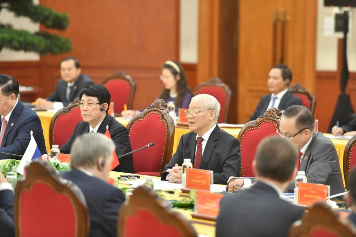 | Tổng Bí thư Nguyễn Phú Trọng tại cuộc hội đàm. Ảnh Duy Linh/Báo Tuổi trẻ |
