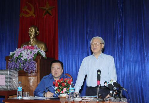 Tổng Bí thư Nguyễn Phú Trọng làm việc với lãnh đạo chủ chốt tỉnh Cao Bằng.