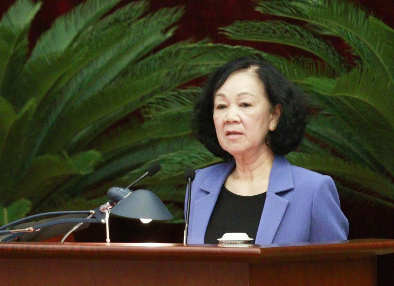| Đồng chí Trương Thị Mai, Ủy viên Bộ Chính trị, Thường trực Ban Bí thư, Trưởng Ban Tổ chức Trung ương phát biểu tại hội nghị - Ảnh: Phạm Cường |