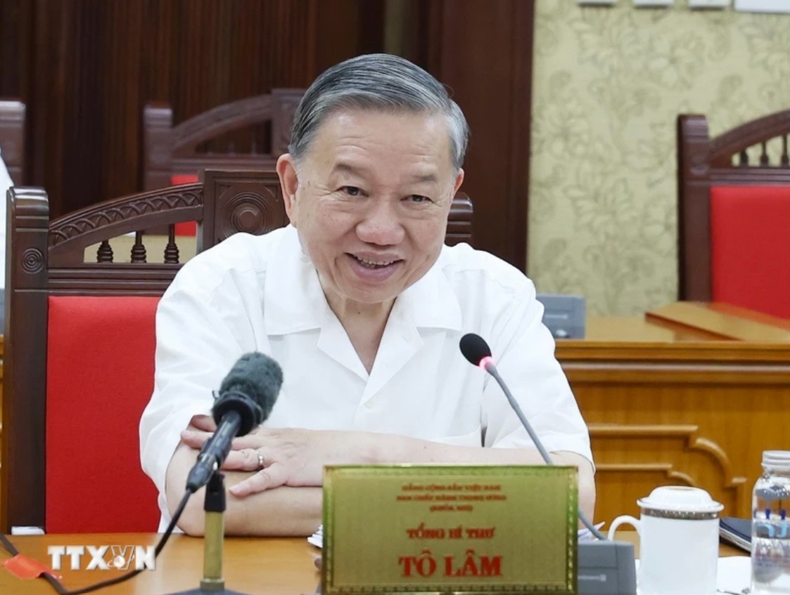 | Tổng Bí thư Tô Lâm chủ trì họp Ban Bí thư về góp ý Dự thảo sửa đổi Hiến pháp năm 2013. Ảnh: Thống Nhất/TTXVN |