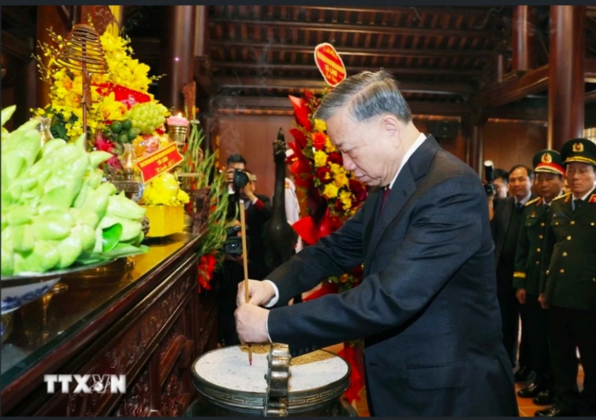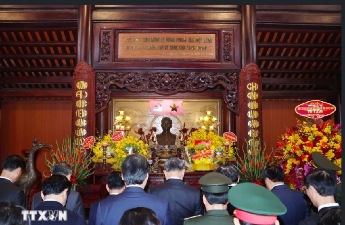 Với truyền thống tốt đẹp “Uống nước nhớ nguồn” của dân tộc Việt Nam, trước đó, Tổng Bí thư Tô Lâm và Đoàn công tác Trung ương đã về Đền Chung Sơn - Đền thờ Gia tiên Chủ tịch Hồ Chí Minh thuộc xã Kim Liên, huyện Nam Đàn, tỉnh Nghệ An, thành kính dâng hoa, dâng hương, tưởng niệm bày tỏ lòng biết ơn sâu sắc đối với Chủ tịch Hồ Chí Minh và những người thân yêu trong gia đình của Người.