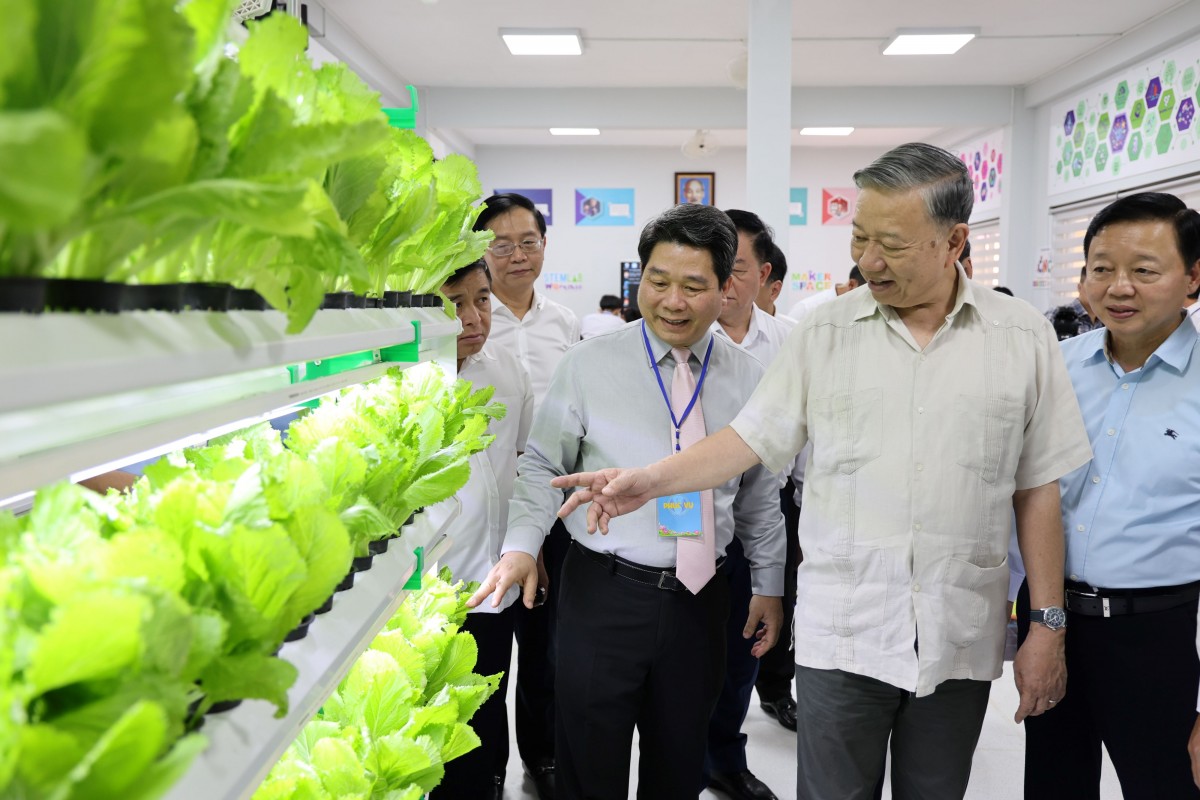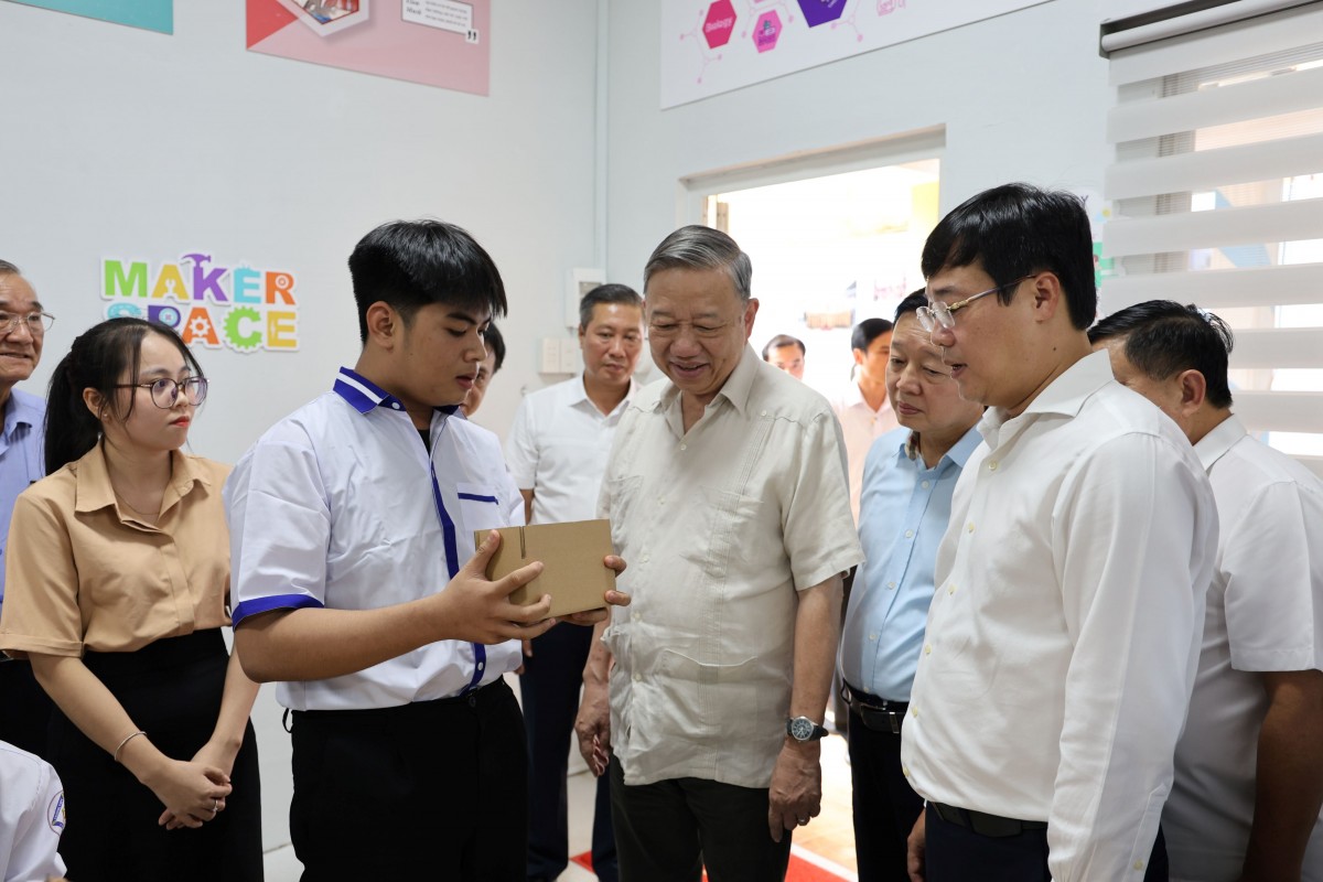 | Tổng Bí thư Tô Lâm thăm phòng thực hành giáo dục STEM tại Trường THPT Tràm Chim |