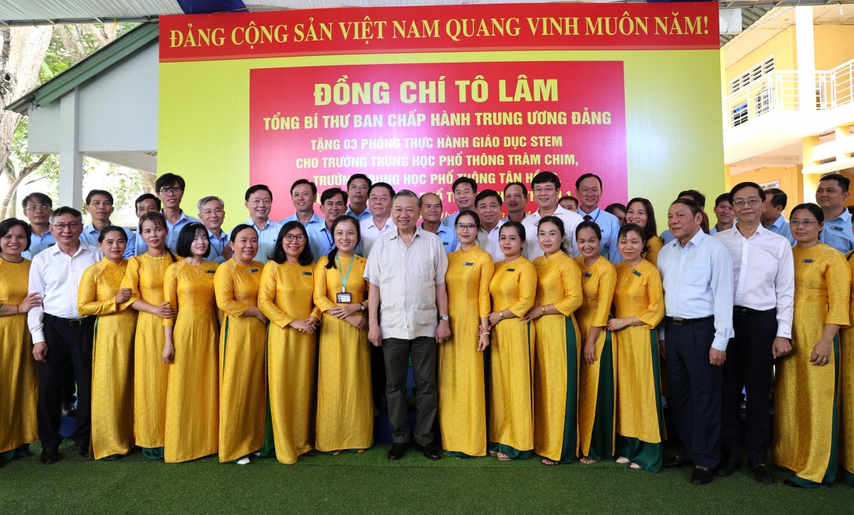 * Chiều cùng ngày, tại điểm Trường Trung học Phổ thông Tràm Chim, thị trấn Tràm Chim, huyện Tam Nông, Tổng Bí thư Tô Lâm đã trao tặng 3 phòng thực hành giáo dục STEM trực tiếp cho Trường Trung học Phổ thông Tràm Chim (huyện Tam Nông) và trao trực tuyến tới điểm Trường Trung học Phổ thông Tân Hồng (huyện Tân Hồng) và Trường Trung học Phổ thông Châu Thành 1 (huyện Châu Thành).