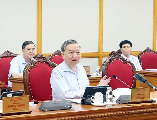 | Tổng Bí thư Tô Lâm phát biểu tại cuộc họp. Ảnh: TTXVN |