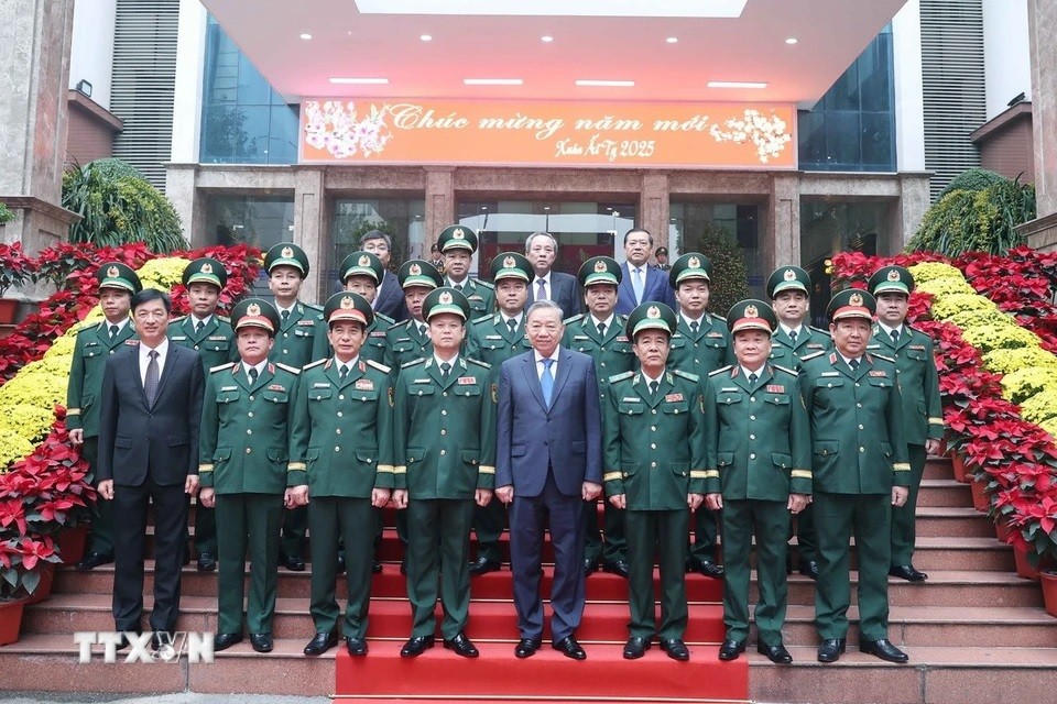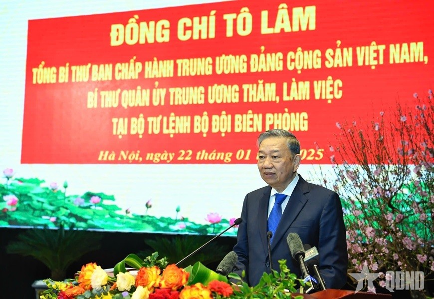 Bước sang năm 2025, một năm đầy ắp những sự kiện trọng đại, Tổng Bí thư đề nghị, tiếp tục giữ vững và tăng cường sự lãnh đạo của Đảng, nâng cao hiệu lực, hiệu quả quản lý của Nhà nước đối với sự nghiệp xây dựng, quản lý và bảo vệ biên giới quốc gia; nghiên cứu, nâng cao năng lực tham mưu và tổ chức thực hiện công tác Biên phòng ở tất cả các cấp; thường xuyên nắm chắc, đánh giá đúng tình hình an ninh, chính trị vùng biên giới, biển đảo, địa bàn trọng yếu cùng các vấn đề an ninh truyền thống, phi truyền thống... kịp thời tham mưu, xử lý hiệu quả các tình huống, không để bị động bất ngờ, bảo vệ vững chắc chủ quyền lãnh thổ, an ninh biên giới quốc gia.