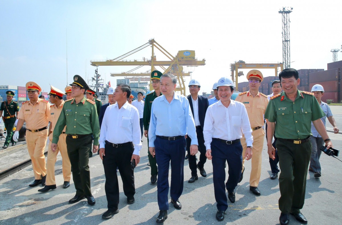 Tại Chi nhánh Cảng Chùa Vẽ, Tổng Bí thư Tô Lâm cùng các đại biểu tham quan tàu tuần tra do cơ quan Cảnh sát biển Hàn Quốc viện trợ cho Bộ Công an Việt Nam. Đây là biểu tượng của sự hợp tác về an ninh trên biển giữa hai quốc gia Việt Nam-Hàn Quốc. Cùng với 2 xuồng cao tốc, 2 mô tô nước được cơ quan Cảnh sát Hàn Quốc viện trợ trước đó, các phương tiện trên sẽ được sử dụng hiệu quả trong công tác huấn luyện nhằm nâng cao năng lực cho lực lượng Cảnh sát đường thủy, nhất là khả năng tuần tra vùng nội thủy, phòng, chống các loại tội phạm trên sông nước.