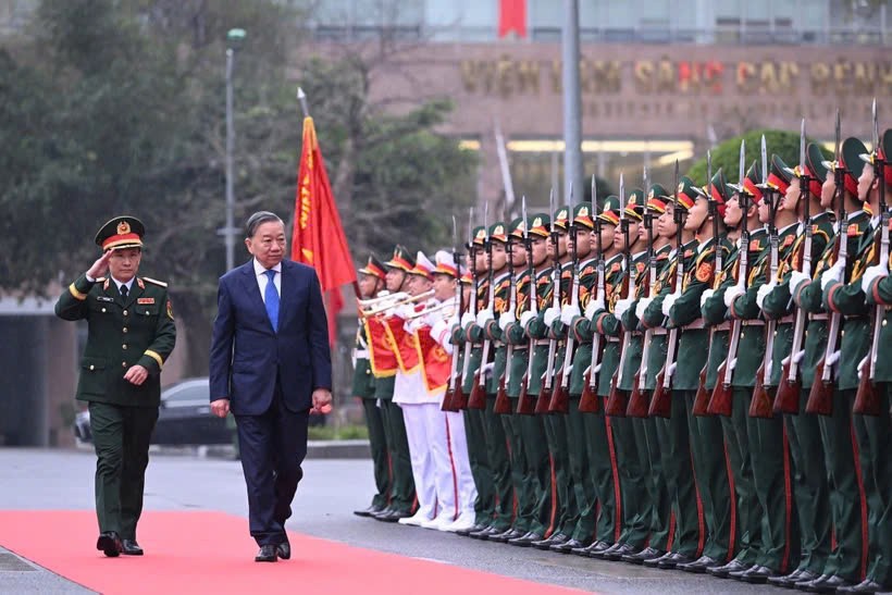 | Tổng Bí thư Tô Lâm, Bí thư Quân ủy Trung ương dự Lễ khánh thành hai tòa nhà: Viện Bảo vệ, chăm sóc sức khỏe cán bộ Trung ương (A11) và Viện Lâm sàng các bệnh truyền nhiễm (A4). - Ảnh: TTXVN |