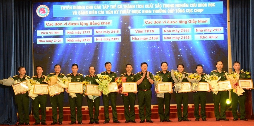 Năm 2023 và 5 tháng đầu năm 2024, toàn Tổng cục đã triển khai thực hiện 169 đề tài, nhiệm vụ, trong đó có 16 đề tài cấp Quốc gia, 62 đề tài cấp Bộ Quốc phòng, 91 đề tài cấp Tổng cục. Các đề tài, nhiệm vụ khoa học công nghệ được triển khai tích cực, cơ bản đáp ứng tiến độ và chất lượng đề ra, đến nay đã đánh giá, nghiệm thu 62 đề tài, nhiệm vụ đạt yêu cầu. Trong đó có 52/62 đề tài được kiến nghị cho áp dụng vào sản xuất, sửa chữa. Công tác sáng kiến, cải tiến kỹ thuật đã được triển khai đồng bộ, đáp ứng yêu cầu về tăng năng suất, chất lượng sản phẩm, bảo đảm an toàn, giảm sức lao động và tiết kiệm nguyên vật liệu trong sản xuất. Toàn Tổng cục có hơn 2.000 sáng kiến cải tiến kỹ thuật được đưa vào áp dụng sản xuất, làm lợi hơn 50 tỷ đồng.