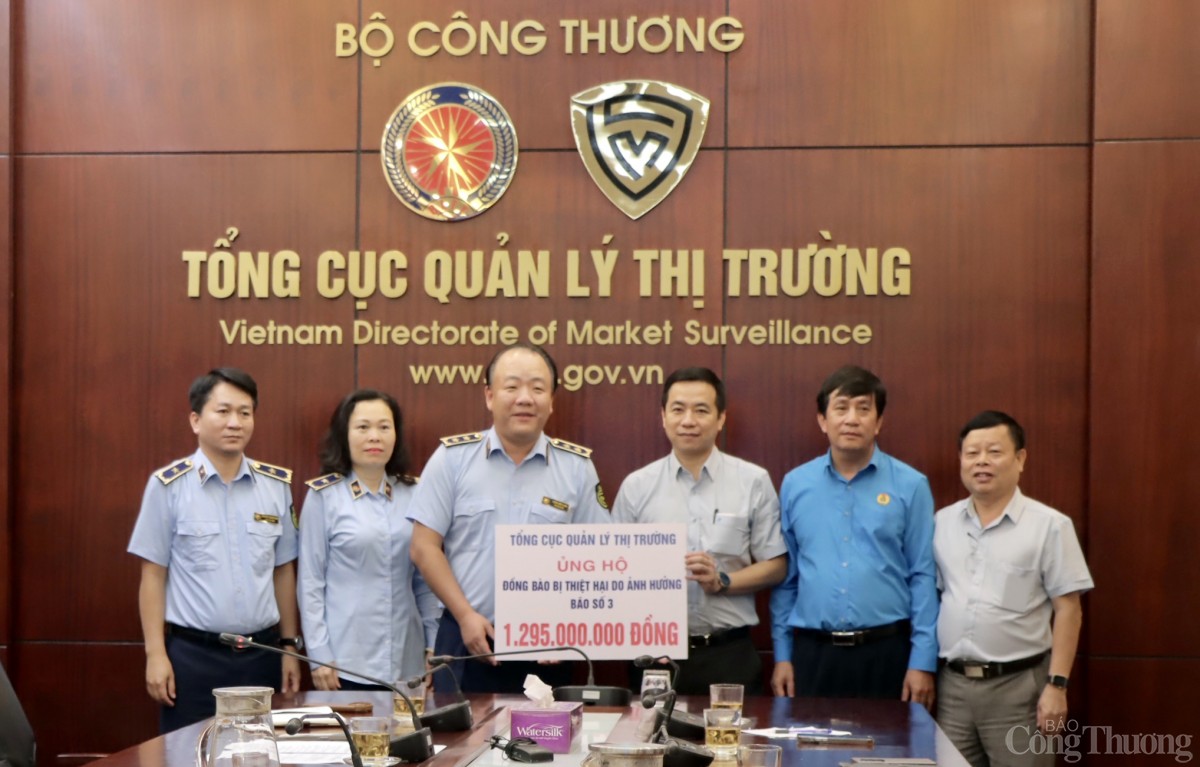 Sáng 16/9, Tổng cục Quản lý thị trường, Bộ Công Thương đã tổ chức buổi trao số tiền quyên góp ủng hộ đồng bào thiệt hại do ảnh hưởng từ cơn bão số 3 đến Công đoàn Bộ Công Thương. Số tiền được huy động từ công chức, người lao động trong toàn lực lượng.
