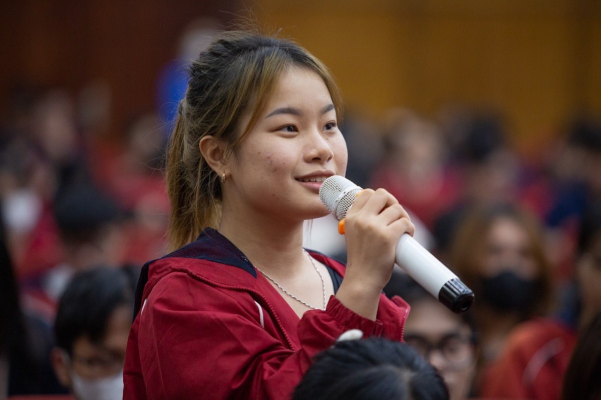| Sinh viên tham dự được hỏi đáp trực tiếp cùng Tổng Giám đốc Ajinomoto Việt Nam. Ảnh: Hồng Phú. |