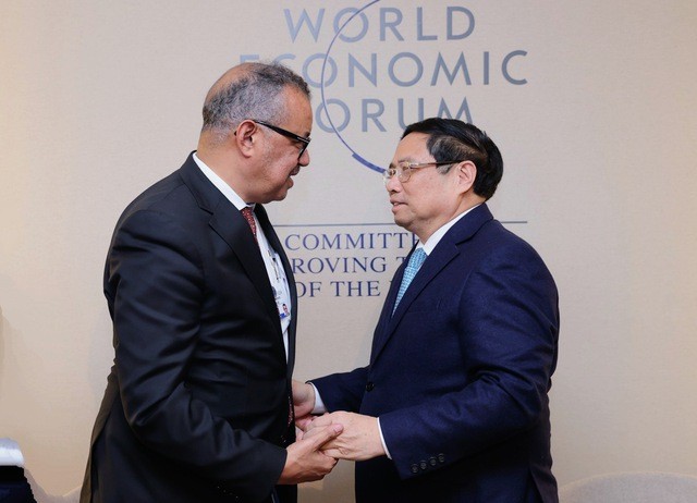 Chiều 17/1 (theo giờ địa phương), tại Davos, Thụy Sĩ, Thủ tướng Chính phủ Phạm Minh Chính đã có cuộc gặp với Chủ tịch Hội đồng quản trị Liên minh toàn cầu về vaccine và tiêm chủng (GAVI) Jose Manuel Barroso; Thủ tướng cũng đã có cuộc gặp Tổng Giám đốc Tổ chức Y tế Thế giới (WHO) Tedro Adhanom Ghebreyesus.