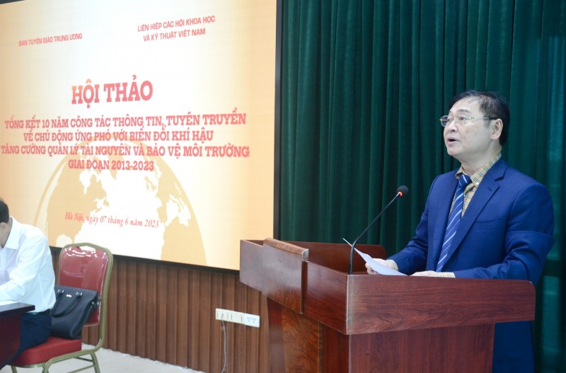 Sáng 7/6, tại Hà Nội, Ban Tuyên giáo Trung ương phối hợp với Liên hiệp các Hội Khoa học và Kỹ thuật Việt Nam tổ chức Hội thảo tổng kết 10 năm công tác thông tin, tuyên truyền về chủ động ứng phó với biến đổi khí hậu, tăng cường quản lý tài nguyên và bảo vệ môi trường giai đoạn 2013-2023.