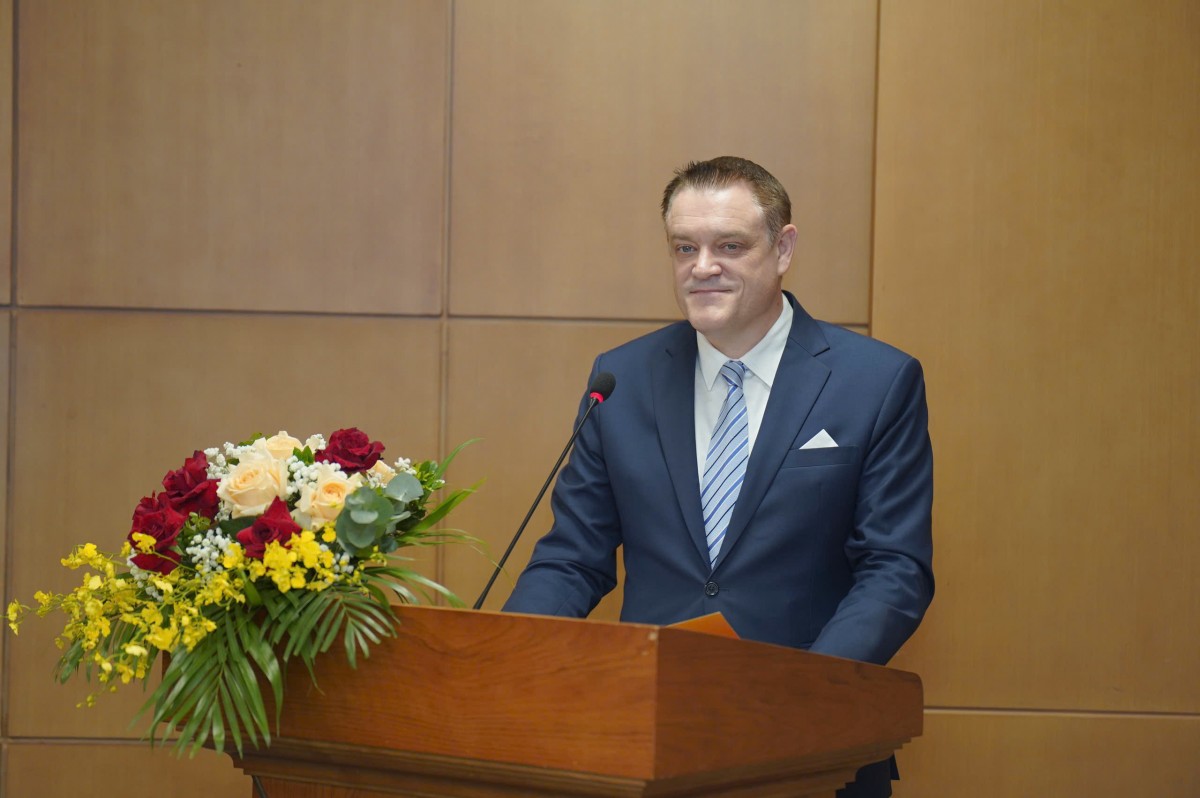| Ông Jason MacVaugh khẳng định sự đồng hành của trường đại học BUV cùng với giải thưởng "Vì sự nghiệp Giáo dục Việt Nam". Ảnh: Xuân Phú |