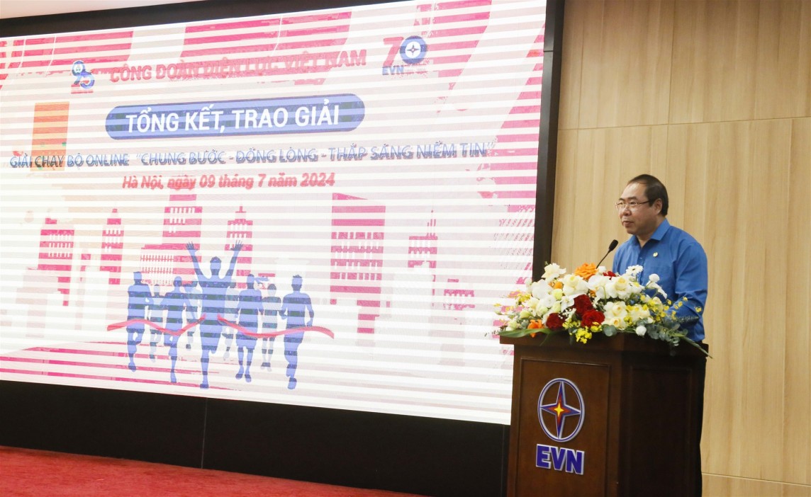 Phát biểu tại Lễ tổng kết, ông Đỗ Đức Hùng, Chủ tịch Công đoàn Điện lực Việt Nam cho biết. Giải chạy bộ online “Chung bước – Đồng lòng – Thắp sáng niềm tin” với những ý nghĩa tốt đẹp và khoảnh khắc tuyệt vời đã khép lại nhưng cảm giác vẫn còn lan toả tinh thần thể thao sôi nổi, sự nhiệt tình tham gia, gắn kết đồng nghiệp. Giải chạy không tìm đến những kỉ lục về điền kinh, mà hướng đến sự kết nối giữa tình yêu thể thao và tấm lòng chia sẻ. Thông điệp “Chung sức – Đồng lòng – Thắp sáng niềm tin” được thắp lên trong mỗi bước chạy để đóng góp 1 km tương ứng 1 ngàn đồng khi tham gia vào Quỹ hỗ trợ xây nhà “Mái ấm đồng nghiệp” trong dịp kỷ niệm 70 năm ngày truyền thống ngành Điện lực Việt Nam. Ý nghĩa nhân văn tạo động lực niềm tin cho đoàn viên, người lao động tham gia.