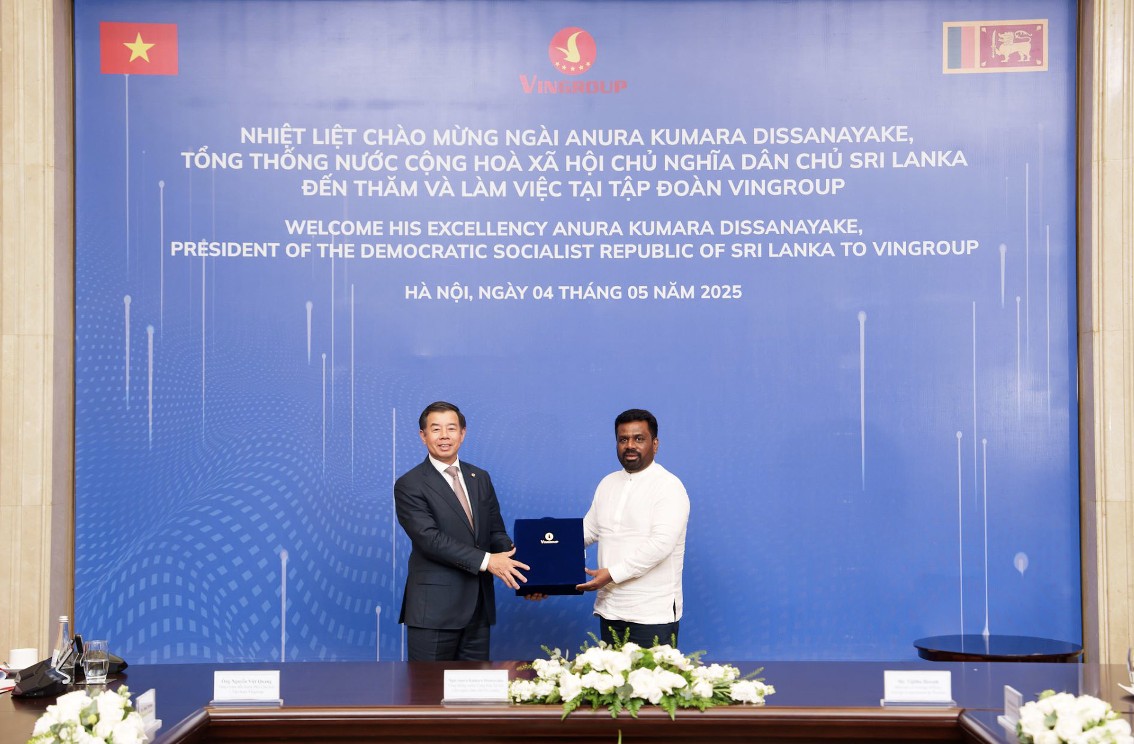 | Ngày 04/5/2025, bên lề chuyến thăm cấp Nhà nước tới Việt Nam, Tổng thống nước Cộng hòa Xã hội Chủ nghĩa Dân chủ Sri Lanka Anura Kumara Dissanayake cùng đoàn đại biểu cấp cao đã đến thăm trụ sở Tập đoàn Vingroup tại Hà Nội. Ông đánh giá cao tiềm năng đầu tư đa ngành của Vingroup tại Sri Lanka, đặc biệt là trong lĩnh vực bất động sản và du lịch. |