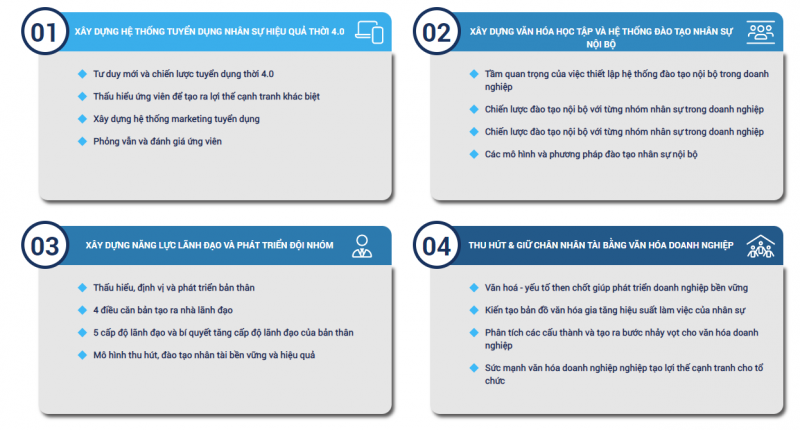 Đứng trước tốc độ biến chuyển liên tục của nền kinh tế thời đại mới, củng cố nền móng nhân lực chính là chìa khóa giúp doanh nghiệp nhanh chóng ứng biến và nâng cao năng lực cạnh tranh trên thị trường. Doanh nghiệp không sẵn sàng sẽ tụt hậu. Doanh nghiệp nào chuẩn bị tốt và thay đổi nhanh thì sẽ vượt qua và phát triển. Vậy nên, phát triển hay tụt hậu đều nằm trong tay của nhà lãnh đạo.