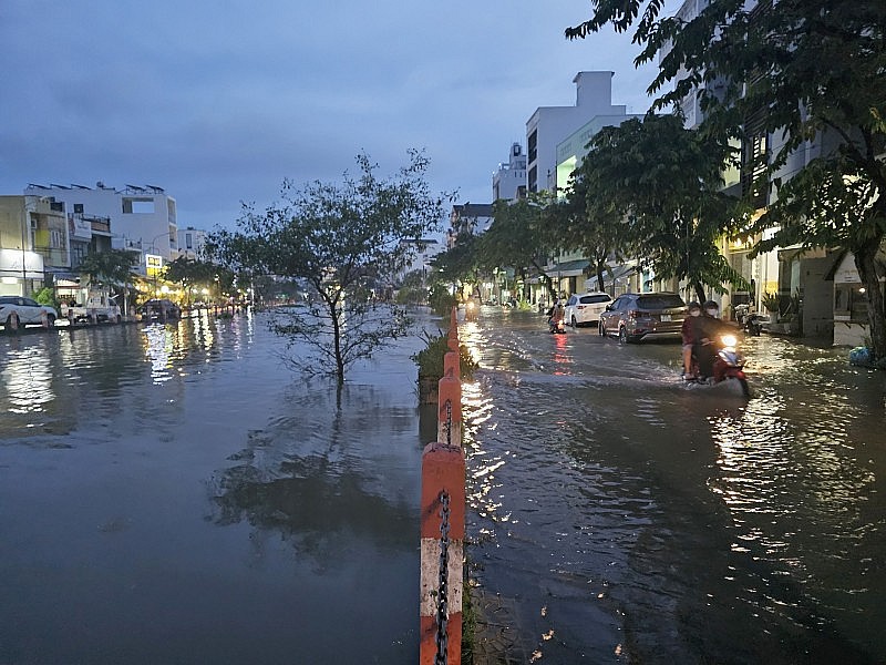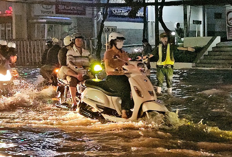 | Từ hơn 17 giờ ngày 29/10, triều cường đã gây ngập sâu trên nhiều tuyến đường trong nội ô TP. Cần Thơ. |
