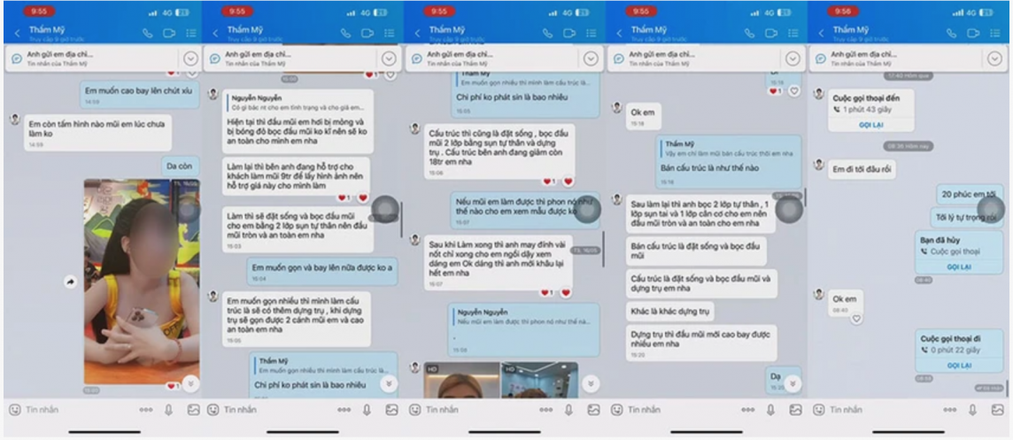 | Tin nhắn tư vấn dịch vụ của phòng khám và bệnh nhân N.T.T.H trước khi sự cố. |