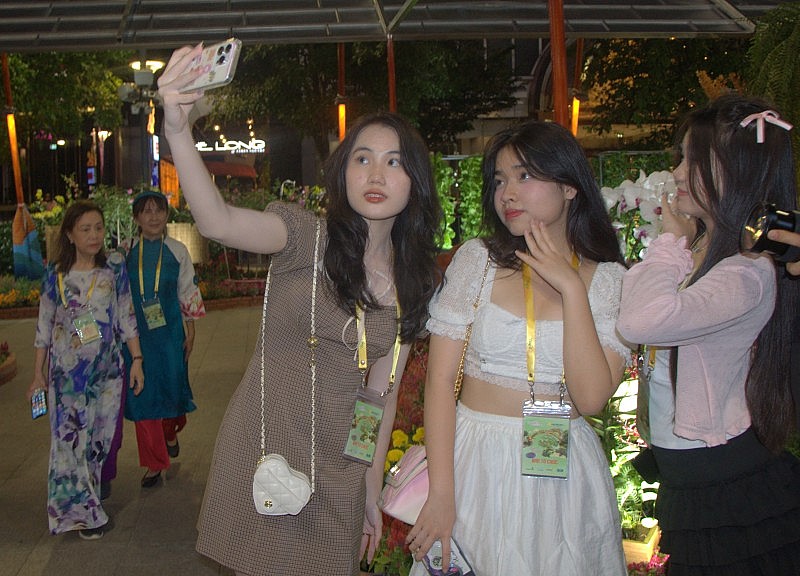 | Các bạn trẻ chụp ảnh lưu giữ những khoảnh khắc đẹp ngay trong đêm khai mạc |