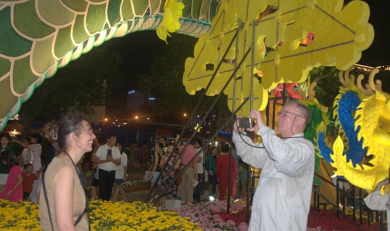 Đường hoa Nguyễn Huệ thu hút sự quan tâm của khách du lịch quốc tế |