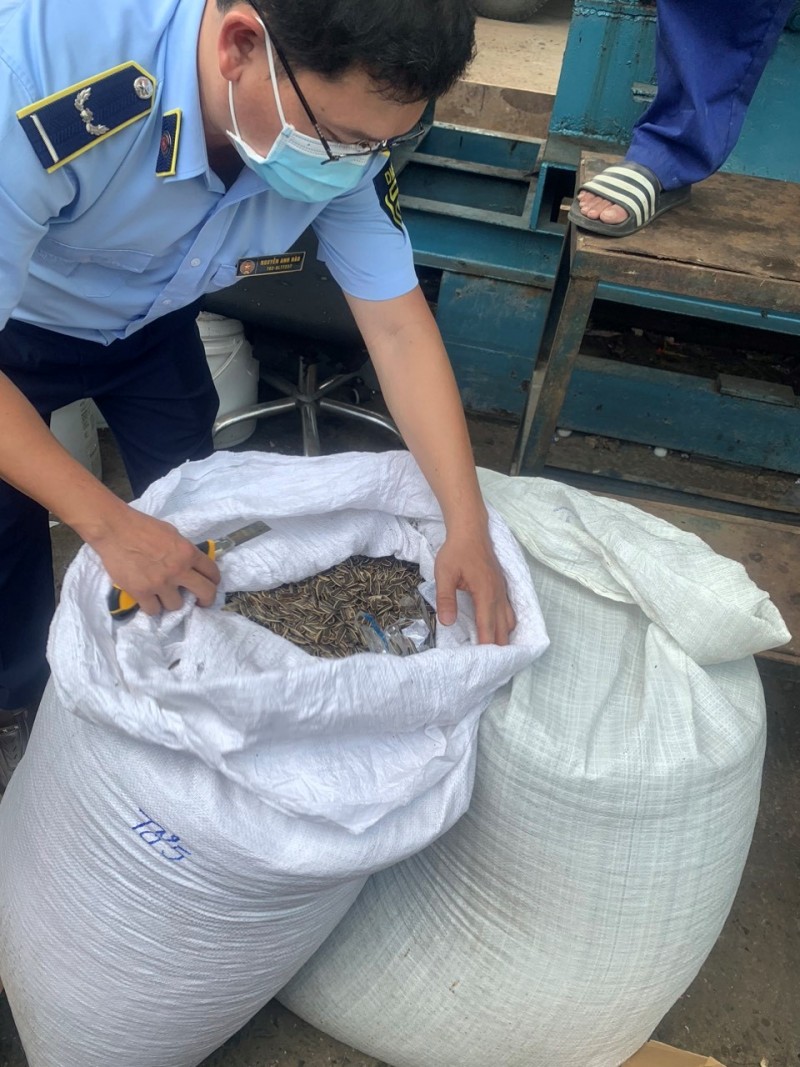 | 200kg hạt hướng dương không rõ nguồn gốc, xuất xứ bị lực lượng Quản lý thị trường thu giữ và tiêu hủy. |