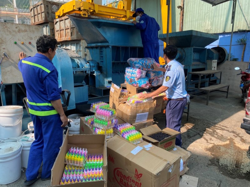 Việc tiêu hủy hàng hàng hóa vi phạm được thực hiện tại Chi nhánh Công ty TNHH MTV Môi trường đô thị TP. Hồ Chí Minh. Hoạt động này dưới sự giám sát chặt chẽ của lực lượng chức năng.