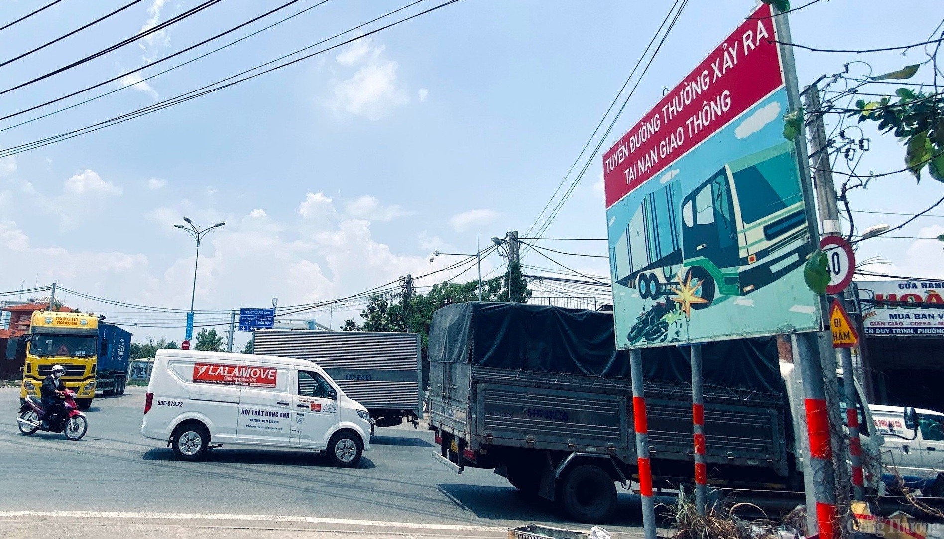 | Lưu lượng các phương tiện tham gia giao thông ở đây rất đông, chính quyền phải cắm biển cảnh báo người dân - (Ảnh: Tấn Hiệp - Sỹ Đồng). |