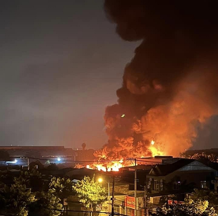 Ngay sau đó, ngọn lửa bùng phát kèm cột khói bốc cao hàng chục mét và nhanh chóng cháy lan sang các khu vực khác của nhà xưởng.