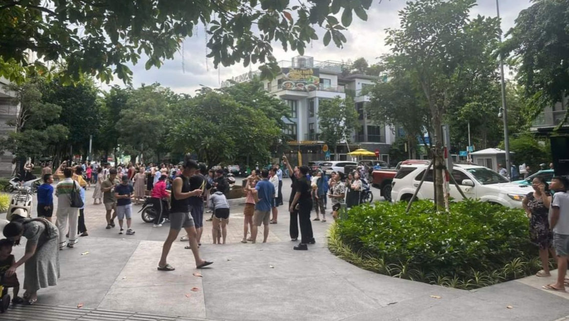 | Hàng trăm cư dân tại Hà Đô Centrosa chạy xuống đường khi có chuông báo cháy. Ảnh: CTV |