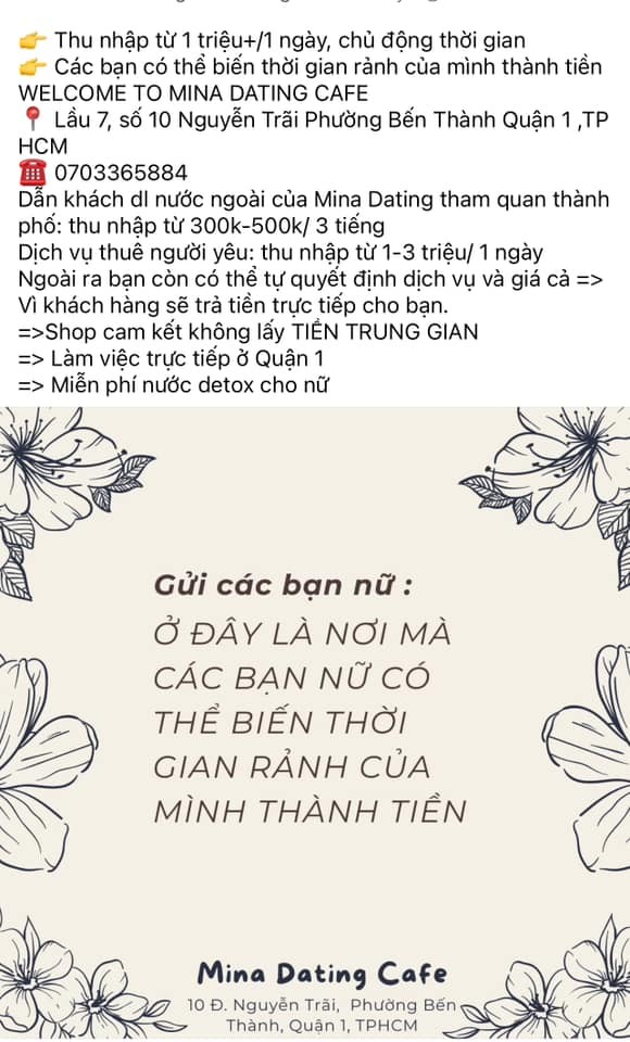 Trưa 2/6, Công an phường Bến Thành, quận 1 đã phối hợp với các đơn vị liên quan nắm thông tin trên mạng xã hội, chủ động kiểm tra quán cà phê trên. Theo đó, quán cà phê đăng tải trong bài viết là quán Mina Dating Cafe ở tầng 7 một tòa nhà trên đường Nguyễn Trãi (phường Bến Thành, quận 1).