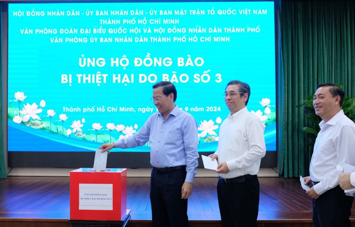 Đến sáng nay, ngày 11/9, HĐND, UBND TP. Hồ Chí Minh, Ủy ban Mặt trận Tổ quốc Việt Nam TP. Hồ Chí Minh, Văn phòng Đoàn Đại biểu Quốc hội và HĐND Thành phố, Văn phòng UBND Thành phố đã tổ chức Lễ phát động ủng hộ đồng bào bị thiệt hại do bão số 3 gây ra.