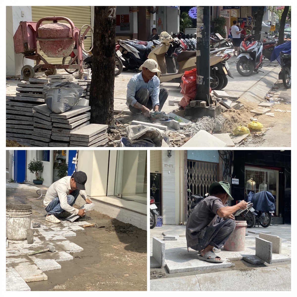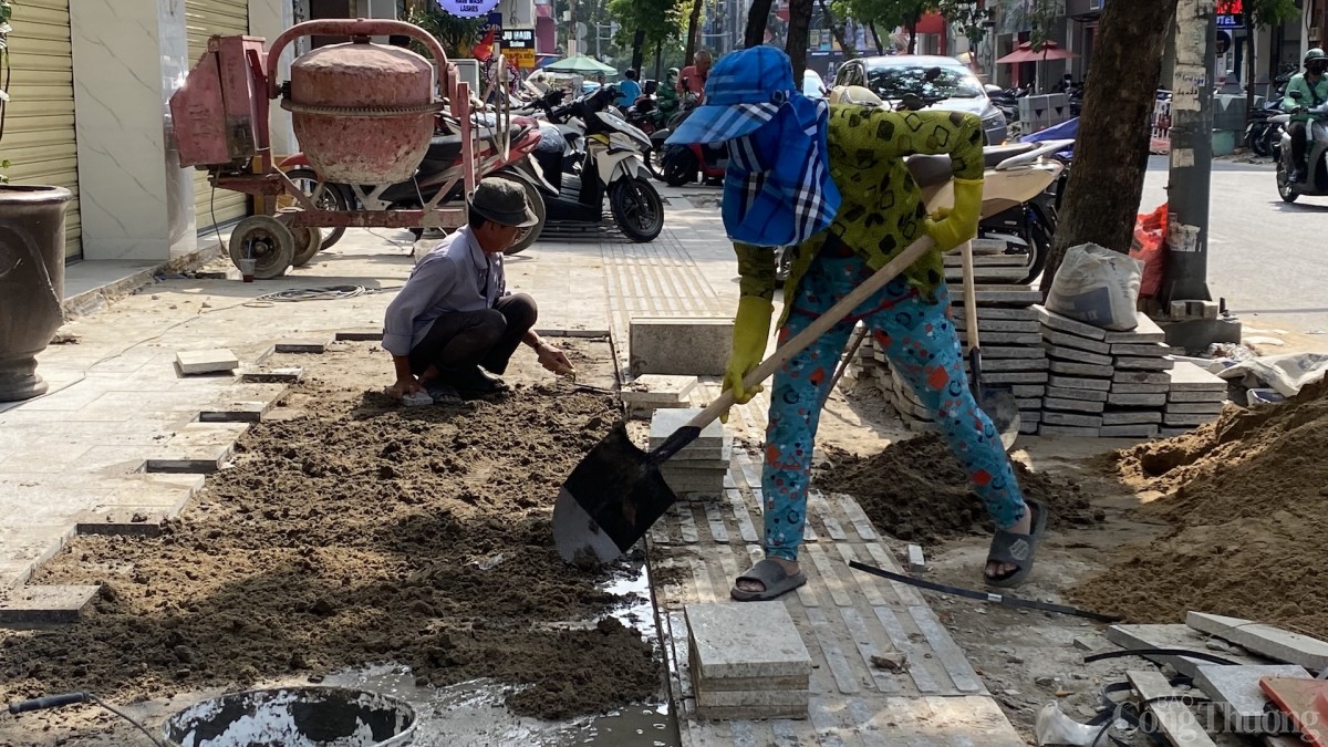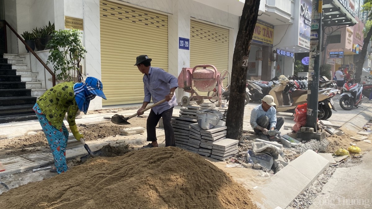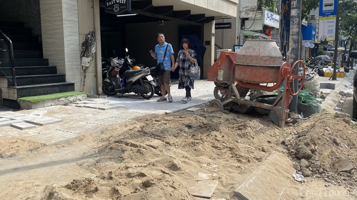 Theo các đơn vị thi công, để hạn chế ảnh hưởng đến sinh hoạt, kinh doanh của người dân, việc đào nền, đổ bê tông được thực hiện vào ban đêm. Ban ngày, công nhân chủ yếu lắp đặt bó vỉa và lát đá hoàn thiện.