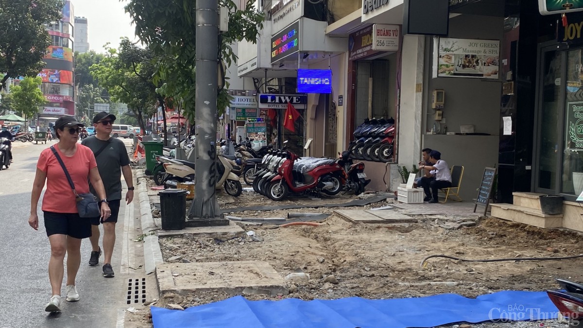 | Nhiều vỉa hè đang được thi công dang dở |